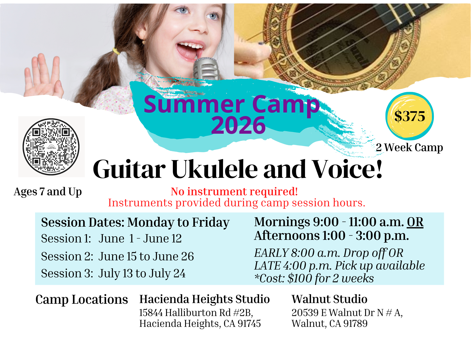 On the last day of camp, participants will be encouraged to perform along with their peers in celebration of their achievements. Students who wish to record their performance, may do so to share with family and friends!